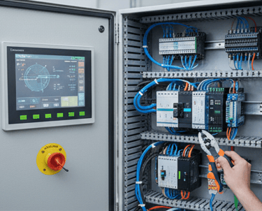 Ontwikkeling van slimme PLC- en HMI-systemen voor efficiënte productieprocessen.