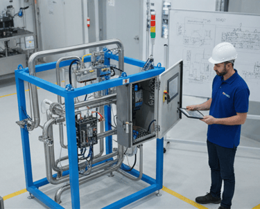 Wij zijn uw totaalleverancier voor complexe automatisatieprojecten en de bouw van modulaire eenheden (Skid Building). U profiteert van één aanspreekpunt voor het hele proces: analyse, engineering, besturing, elektrische integratie, en commissioning.