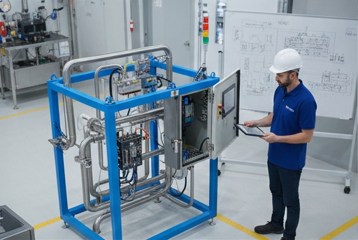 Ontwikkeling van een complete mobiele doseereenheid (Skid Building) inclusief alle besturing en visualisatie. We gebruikten IO-Link voor slimme sensoren en integreerden de HMI-besturing direct met een cloudoplossing, waardoor klanten de doseringsstatus mobiel konden monitoren via MQTT.